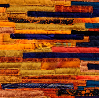 Textile collage made with hand-dyed and commercial cotton fabrics and silk.